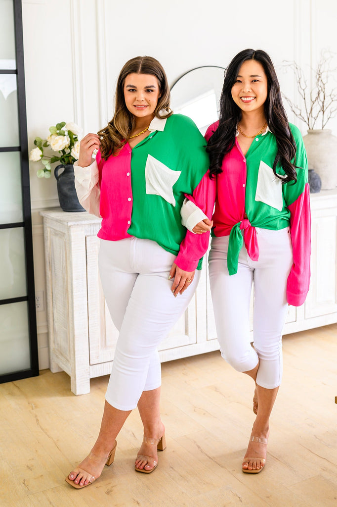 Capture the Day Two Toned Button Up Kelly