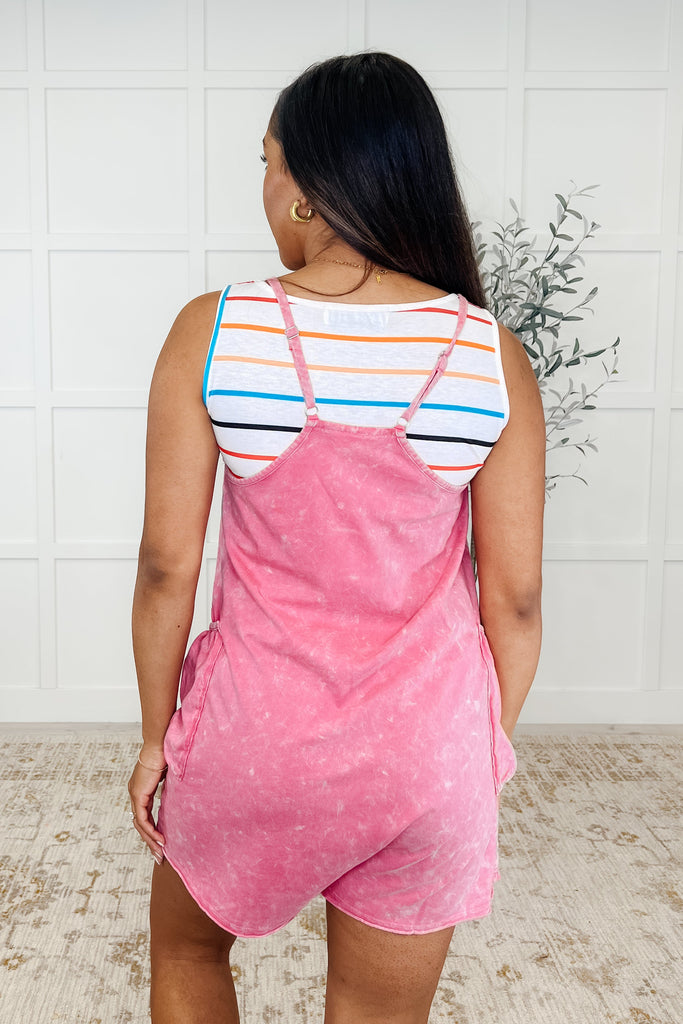 Carefree Cutie Slouchy Pocket Romper in Pink