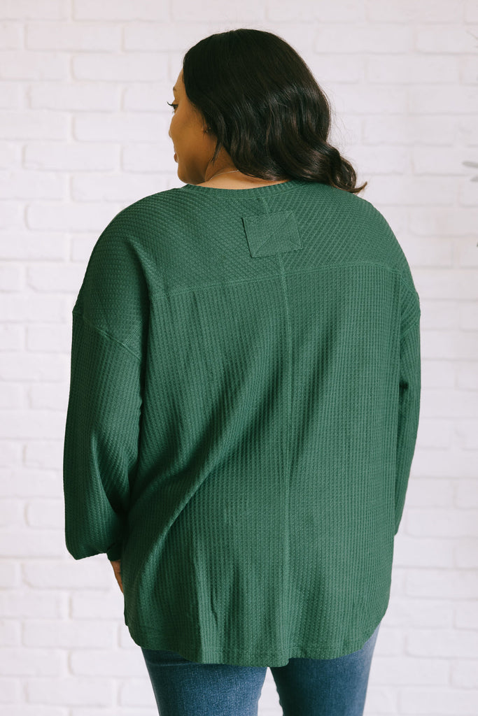 Our Good Things Are Coming V-Neck Top in Green is serving up some serious style with its v-neckline and drop shoulder silhouette. The banded sleeve cuff adds a nice touch, while the scooped asymmetrical hemline keeps things interesting. Plus, the faux tag detail is a quirky detail. Good things are definitely coming with this top.