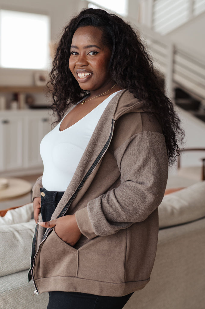 Stay warm and stylish with the On And On Zip Up Hoodie. This cozy hoodie features french terry fabric throughout the body and reverse-french terry sleeves, plus a contrast zipper and pockets for added warmth and convenience.