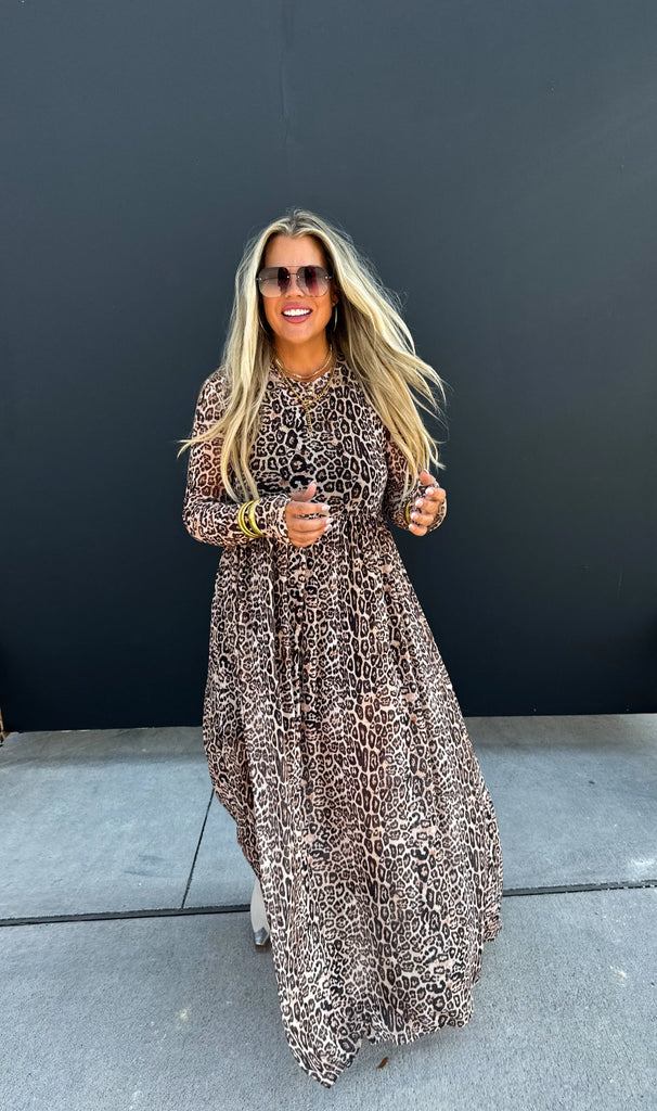 This dress features a sheer, long design with a fierce cheetah print. The long sleeves come with thumbholes for added style and comfort. This dress is sheer and is best paired with a slip dress, bodysuit, jumpsuit, or shorts.