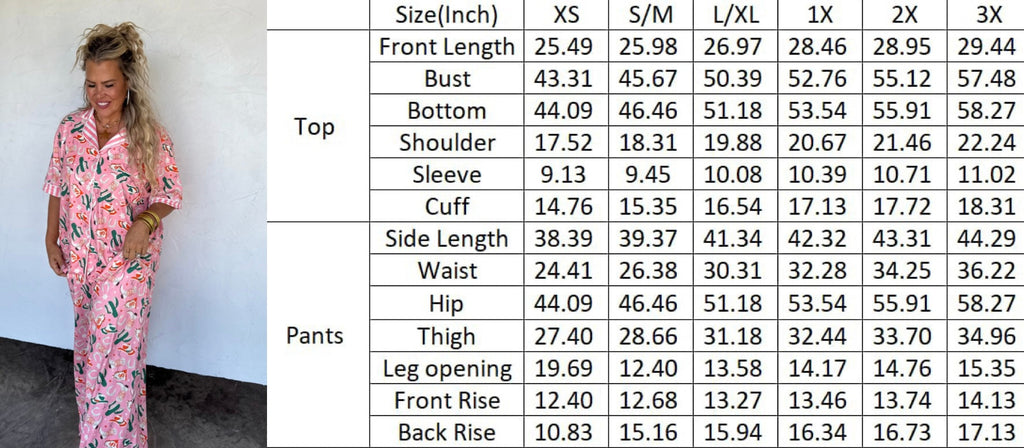 Our Luxe PJ Lounge sets are the perfect sleep set for both comfort and style. Features a button-up top with short sleeves and matching pants, with cute designs that will keep you looking good while you relax. The fabric is ultra-soft, STRETCHY and lightweight for a relaxed feel. Pants have pockets and elastic waist. Feature solid color piping on all trim for an extra "luxe" look!