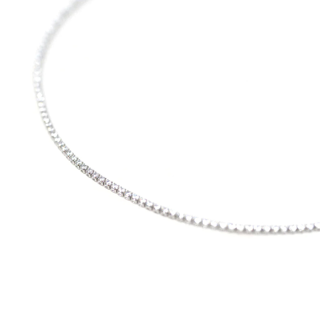 This dainty tennis chain necklace will complete your look and is a layering staple! Available in gold or silver finishes.