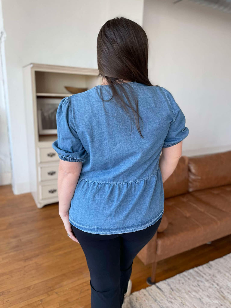 The sweetest spring top is here! This adorable tie front bow top features puff sleeves with elastic cuffs, hidden functional button front, adjustable bows and a flirty peplum design!