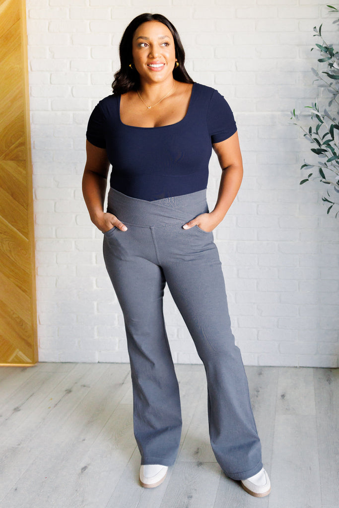 - Building Habits Twill Flared Crossover Waist Pant in Titanium